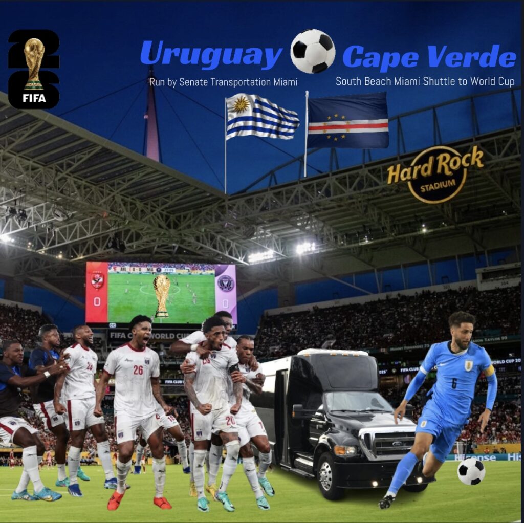 Book A $65.00 Round-Trip Shuttle Pass to the Uruguay vs Cape Verde soccer game scheduled for Sunday, June 21st from South Beach Miami. Please be advised that this service will be a NONSTOP (Express) shuttle to Hard Rock Stadium. At the conclusion of the game, we will allow a 45-minute grace for all passengers to return back to the shuttle.